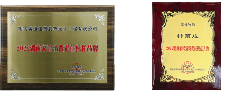 美迪裝飾以高品質(zhì)產(chǎn)品、優(yōu)質(zhì)的服務(wù)彰顯品牌實力,書寫品牌的責(zé)任與擔(dān)當(dāng),獲得社會一致認(rèn)可,榮獲“2022湖南家居消費責(zé)任標(biāo)桿品牌”授牌。美迪裝飾董事長鐘菊成榮獲“湖南家居消費責(zé)任模范人物”稱號。