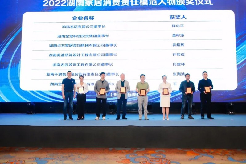 活動現(xiàn)場,行業(yè)領(lǐng)導(dǎo)為“2022湖南家居消費責(zé)任標(biāo)桿品牌”、“湖南家居消費責(zé)任模范人物”進(jìn)行頒獎、授牌。
