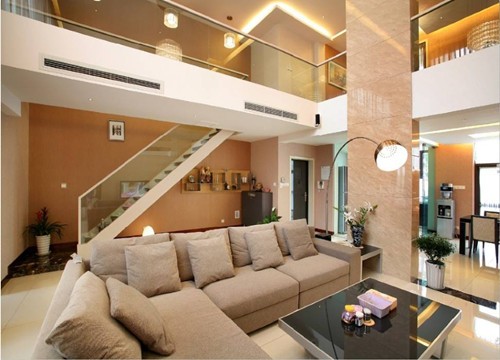 別墅常有多樓層,空間較充足,可以適當(dāng)客廳數(shù)量,在一、二樓各設(shè)計一個客廳。錯層沉降式的設(shè)計,經(jīng)常被用于別墅門廳到客廳的區(qū)域,它可以使空間更具層次和視覺沖擊的感覺,更具設(shè)計感,也使空間能夠更好的被利用。
