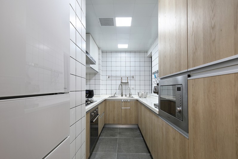 狹長(zhǎng)的廚房空間,完美的突出了日式風(fēng)格的主題,不浪費(fèi)每一寸地方。廚房的設(shè)計(jì),讓整個(gè)空間都變的通透又寬敞起來。