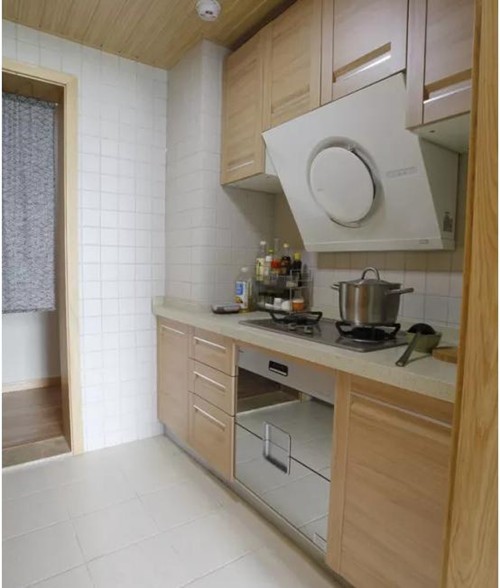 廚房也契合了日式風(fēng)格的核心,沒有太多復(fù)雜的物品和裝飾,視覺上給人一種清新明亮的感覺。原木色和白色搭配,顯得舒適又平靜,讓整個(gè)空間都顯得比較精致整潔。