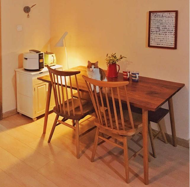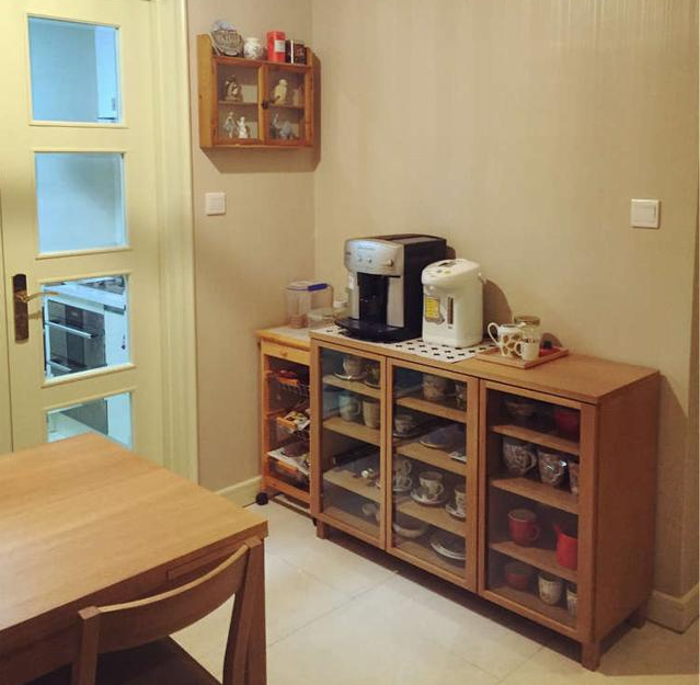小尺寸的餐邊柜,放在墻邊剛剛好。并且電飯煲也可以放在臺(tái)面上。