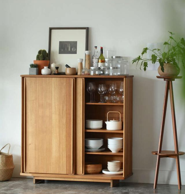 再也不用擔(dān)心好看的碗盤杯子沒(méi)地方展示了。把它們都整齊的擺放在餐邊柜里吧。
