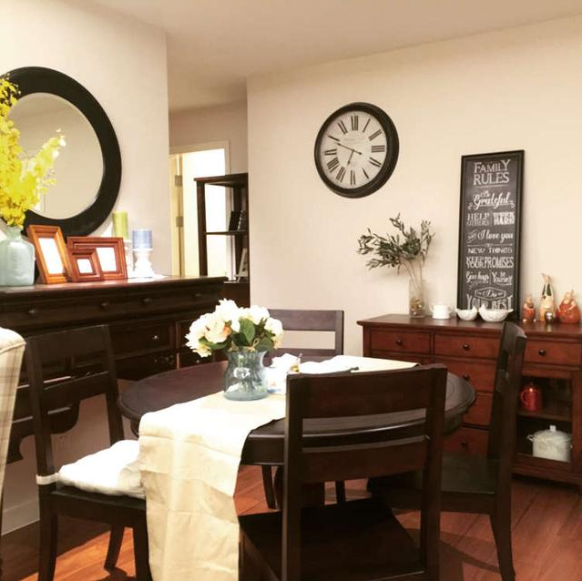 5、餐邊柜上方的墻面可以成為一面照片墻。