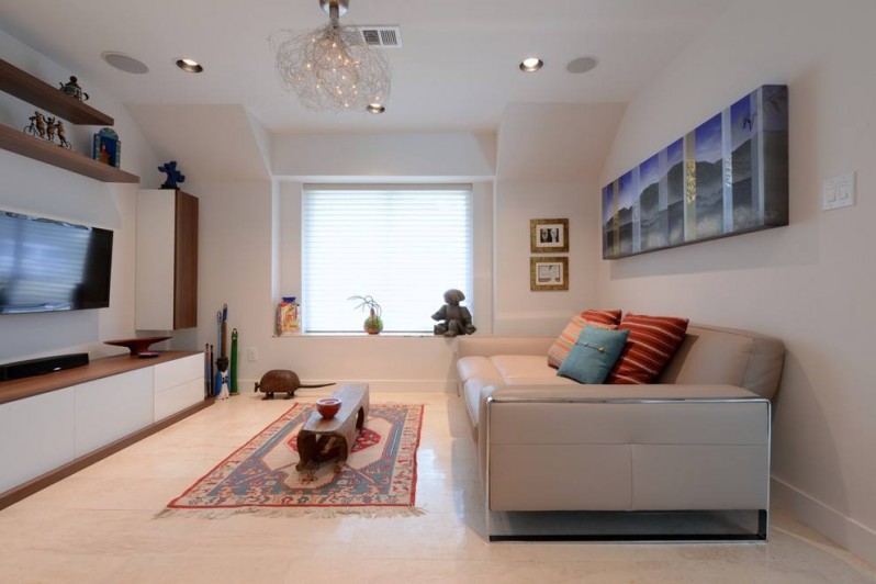 先對(duì)墻面進(jìn)行面層處理,解決掉裂縫、起皮、發(fā)霉等墻面問(wèn)題后,用膩?zhàn)诱移?、打磨平整之后刷上乳膠漆。墻面上下部與頂面、地面相接的地方分別用石膏線、踢腳線的等收口裝飾。這種方法簡(jiǎn)單快捷,還能配合畫(huà)框、相片框、燈光等多種點(diǎn)綴方式,使墻面效果更加多樣化。