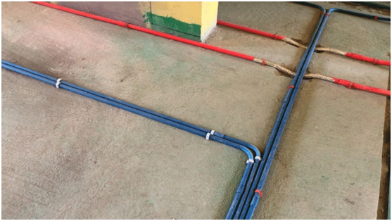 在各強(qiáng)弱電交叉處,用錫箔紙包裹,其目的減少信號干擾。同時,定距安裝管道卡口。在工地現(xiàn)場,我們的項目經(jīng)理也提醒業(yè)主,在水電驗收時,可注意幾點: