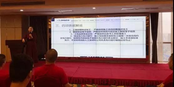 在大會(huì)上,我們的運(yùn)營中心總經(jīng)理兼總店店長高澗暉也特別強(qiáng)調(diào)道:“將 ‘放心家裝,四項(xiàng)鐵規(guī)’嚴(yán)格執(zhí)行到位,讓工地說話?!?/span>