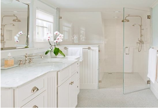 此方法主要適合需要裝修的人士,因為該方案需要花點功夫,需觸動工班重組衛(wèi)生間;用霧玻璃取代水泥墻,是可以由室內(nèi)光源改善衛(wèi)生間里光線不足問題。