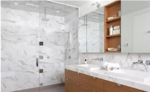 衛(wèi)生間無對外窗,采光也就成了另一大問題;深色系裝修風(fēng)格只會讓該空間更加陰暗沉重。相反,淺色系、亮色系卻可以提亮空間感;