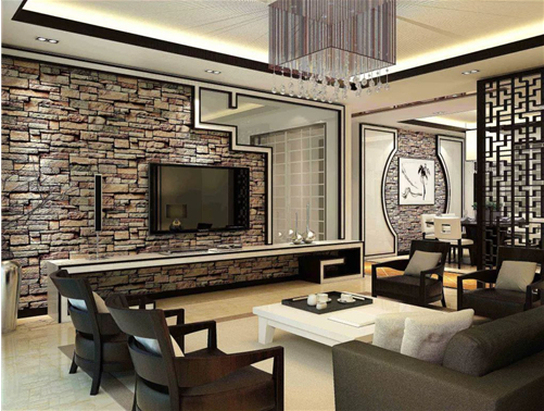 還可以在電視背景墻中加入字畫等帶有中國傳統(tǒng)文化的元素,搭配大理石、文化石等頗具質(zhì)感的主材,打造一個充滿古典韻味的電視背景墻。