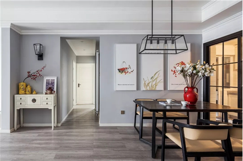 如果不想設(shè)計(jì)風(fēng)格太雜亂,收口就要做到簡(jiǎn)潔干凈利落,利用石膏角線來遮擋天花和墻壁陰角不齊、凹凸不平的問題。水管,電線如果從屋頂走的話,也可以用石膏線遮擋一下。