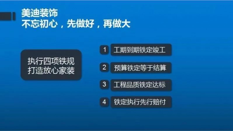 拒絕家裝陷阱,把擔(dān)心變成放心!美迪裝飾率先推出先行賠付政策,嚴(yán)格執(zhí)行四項鐵規(guī):