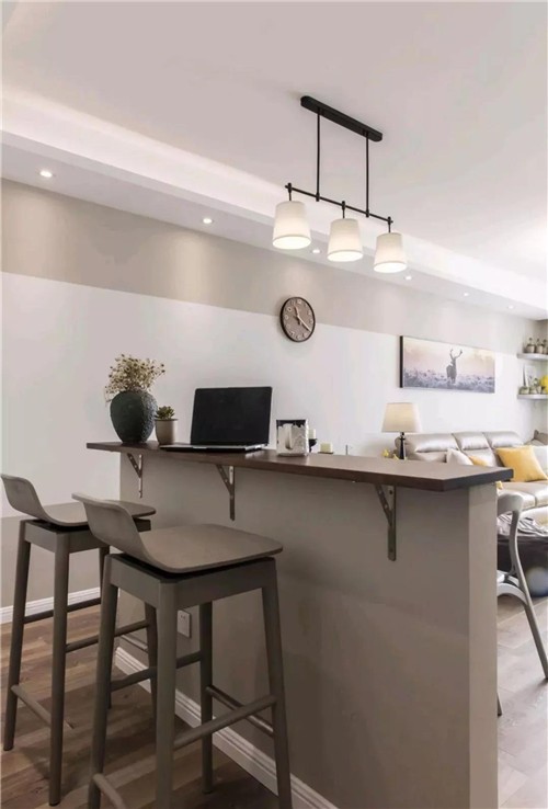 整個客廳餐廳空間連貫通都,在滿足了豐富的收納功能基礎下,搭配上美感的裝飾,打造出一種現(xiàn)代愜意的生活氣息;