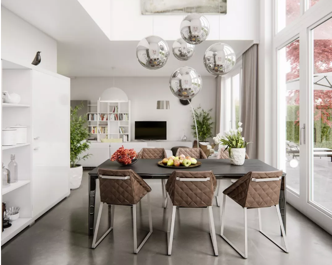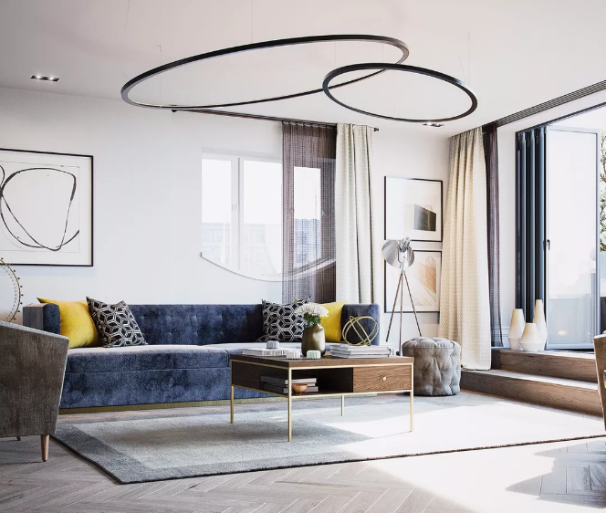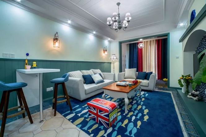 家具和布藝軟裝進(jìn)行對比也是個好辦法,比如室內(nèi)色調(diào)以淺色為主,抱枕、窗簾、地毯等布藝軟裝的顏色接近,而沙發(fā)和椅子則顏色較鮮明,這樣對比層次感強(qiáng)烈。再通過藝術(shù)壁畫、特色吊燈等裝飾品,提升整個空間的藝術(shù)品味。