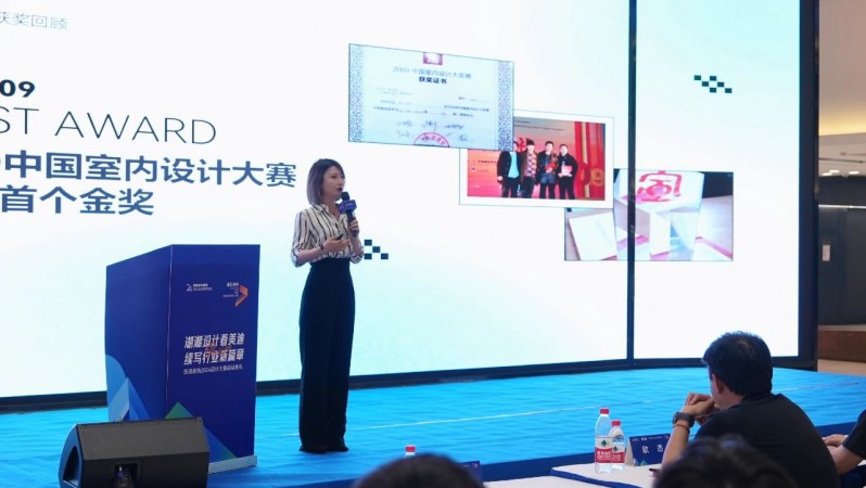 美迪裝飾設計師文敏、吳京、楊杰上臺分享自己的精彩創(chuàng)意和設計靈感,并聆聽評委們的專業(yè)點評。