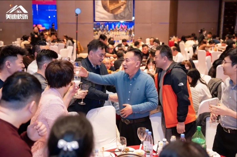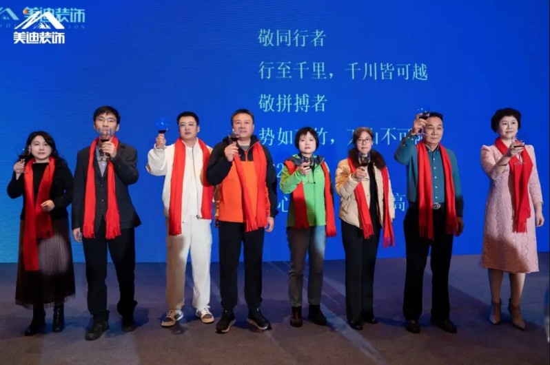 大會的最后,副董事長鐘成、總裁張曉帆、副總裁楚君、副總裁江濤、督察長徐立等領(lǐng)導(dǎo)上臺,為全場祝酒。他們舉杯共祝,感謝每一位美迪人的辛勤付出,并期待在新的一年里,大家能夠同心同行,再創(chuàng)佳績。