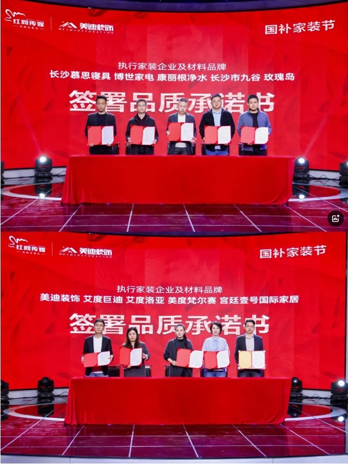 活動現(xiàn)場,美迪裝飾聯(lián)合艾度巨迪、慕思寢具、大金空調、博世家電等一線品牌簽署《國補品質承諾書》,承諾明碼標價、杜絕隱性消費、全程接受紅網監(jiān)督,為消費者權益保駕護航。