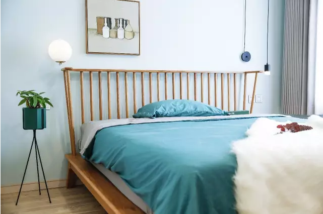 次臥以優(yōu)雅沉靜的藍色為主,簡簡單單的裝飾,被濃濃的舒適感包圍著。