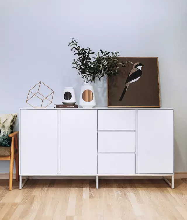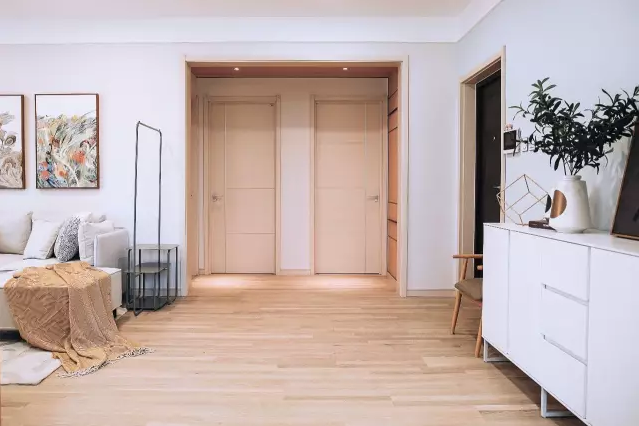 入戶左側有一個通體白色的玄關柜,用來收納鞋子或其他日常物品,簡單又實用,大大保證了門廳的整潔美觀。