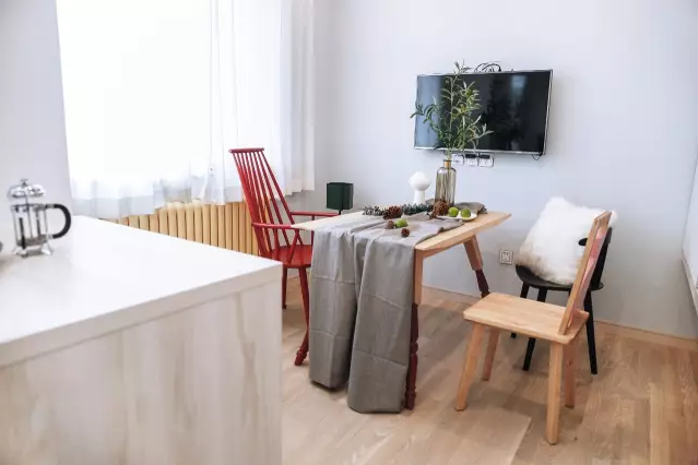 客廳通過白色與木色來提亮空間,搭配簡約而別致的功能性家具,整體看上去淡雅、柔和,帶來一種寧靜的感覺。