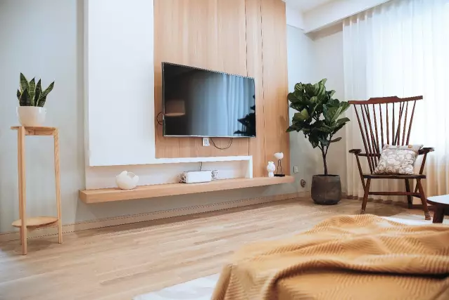 別具一格的電視背景墻,延續(xù)了整個舒適自然的空間格調;陽光從窗簾中透射進來,營造出一種溫暖愜意的感覺。