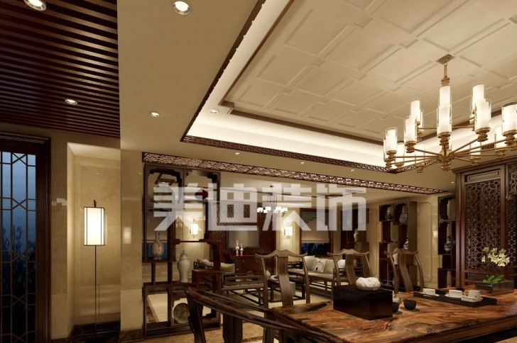 喜歡帶朋友來家里喝喝茶打打牌。因此設(shè)計(jì)師要打造一個(gè)仿佛時(shí)空穿越的古樸空間