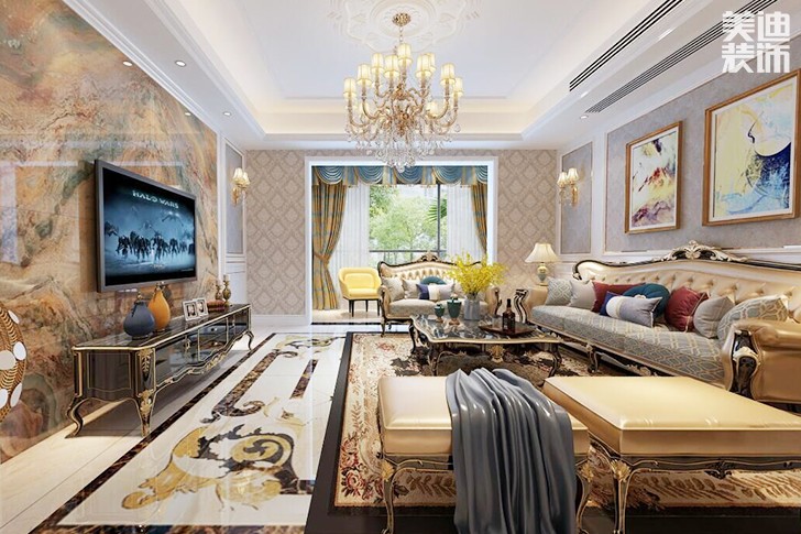 國際公館歐式風格420平米裝修效果圖--客廳