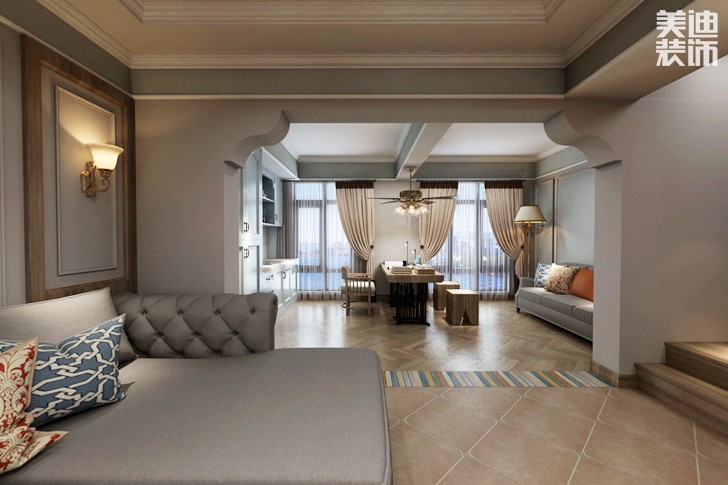 設(shè)計理念: 本案以傳統(tǒng)的中式文化為底蘊(yùn),將清雅含蓄且代表中國傳統(tǒng)家具中的經(jīng)典元素與新中式抽象美感相結(jié)合,以一種東方人的美學(xué)觀念控制節(jié)奏,循序漸近,使整個案例格調(diào)優(yōu)雅,平和內(nèi)斂,將東方文化的美感融入現(xiàn)代生活,盡顯大家風(fēng)范。