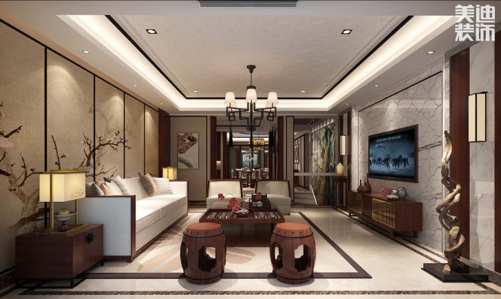 艾美瀟湘220平米新中式風格案例圖--客廳