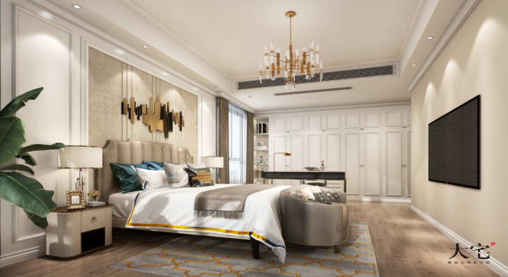 湘江壹號220平方米簡美風格案例效果圖-臥室
