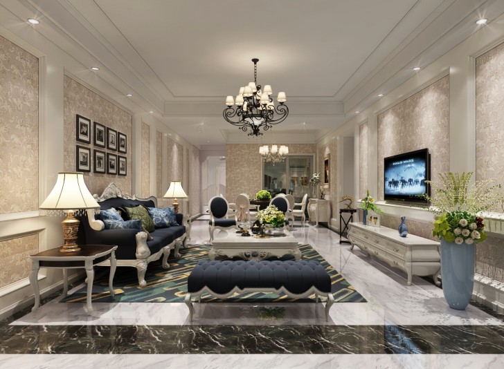 富源昊天132㎡小美式效果圖--客廳