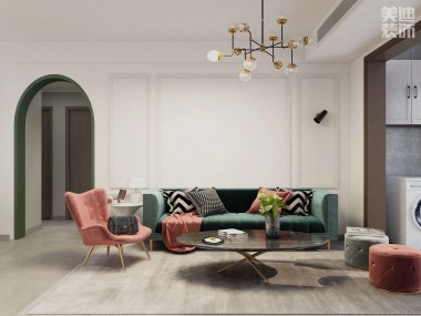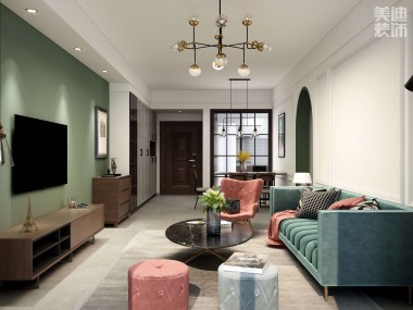 時代港灣89㎡復古風格案例效果圖-客廳