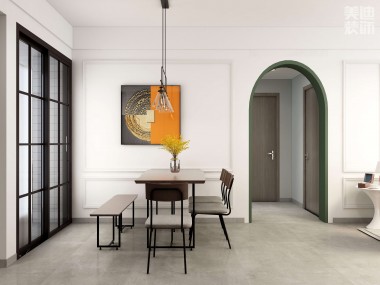 時代港灣89㎡復古風格案例效果圖-餐廳