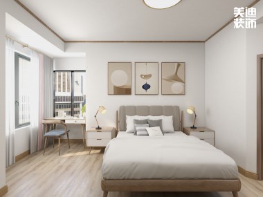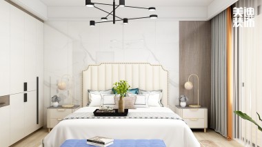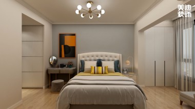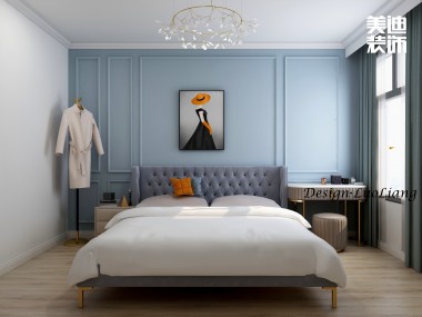 時代港灣89㎡復古風格案例效果圖-臥室