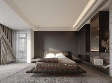 碧桂園201平現(xiàn)代風裝修案例圖—主臥室