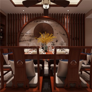 香樟鑫都120平中式裝修案例效果圖-餐廳