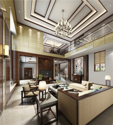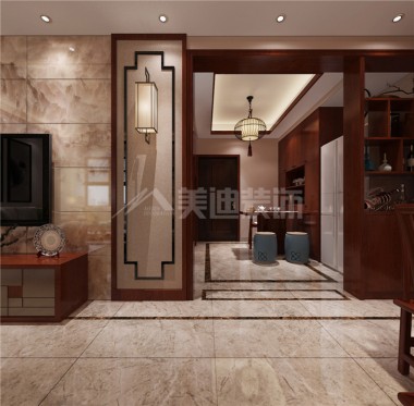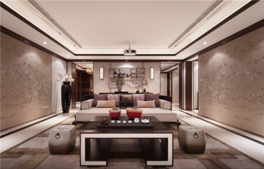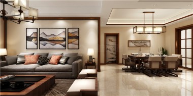 香樟鑫都120平中式裝修案例效果圖-客廳
