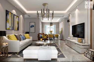 明發(fā)國際85㎡輕奢風格案例效果圖—客廳