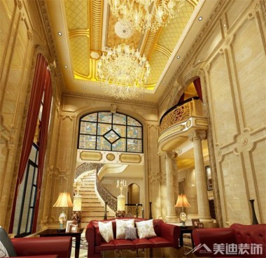 碧桂園800平美式風(fēng)裝修案例圖—客廳