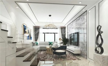天麓商層165平后現(xiàn)代裝修案例圖—客廳