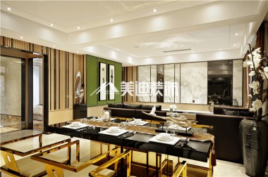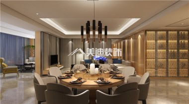 定江洋220平港式風裝修案例圖—餐廳