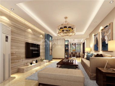 蘭亭灣畔125平港式風裝修案例圖—客廳