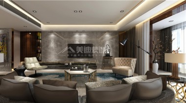 定江洋220平港式風裝修案例圖—客廳