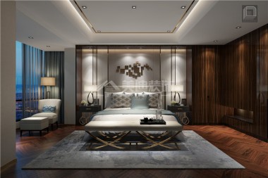 定江洋220平港式風裝修案例圖—主臥