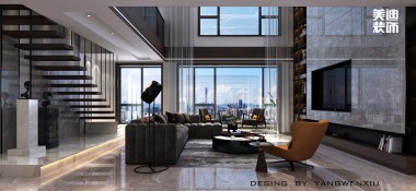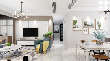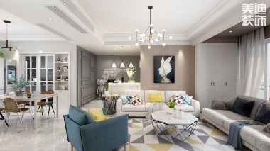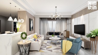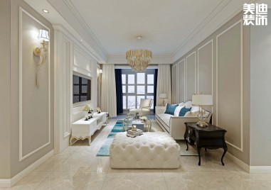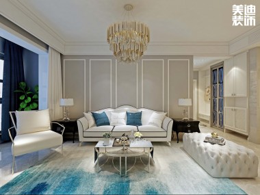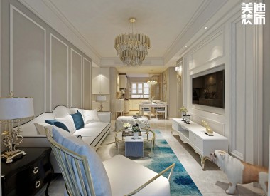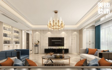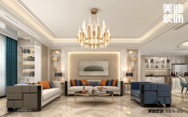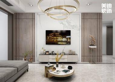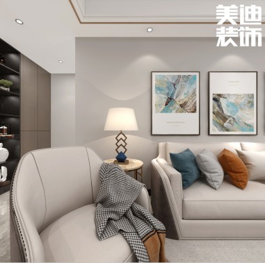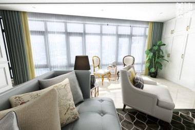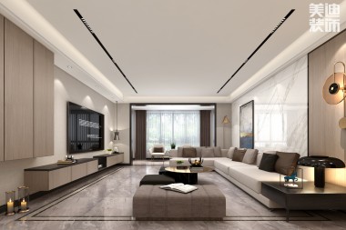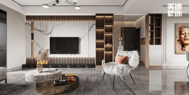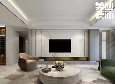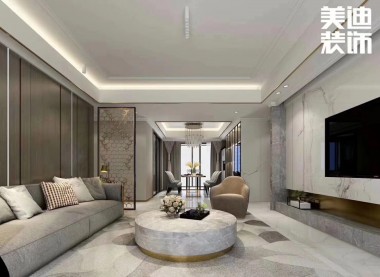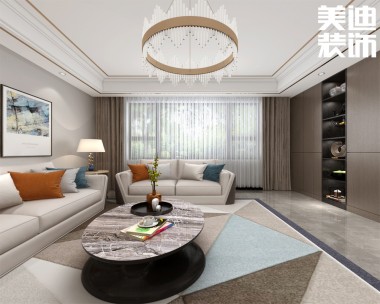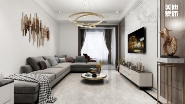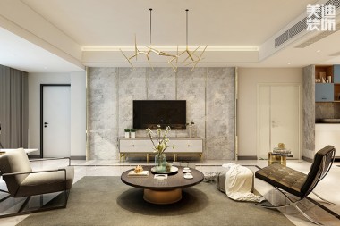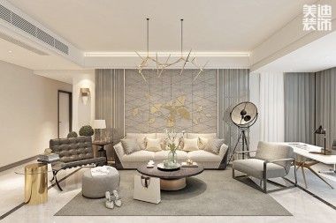 明發(fā)國際85㎡輕奢風(fēng)格案例效果圖—客廳