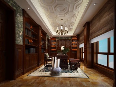 碧桂園800平美式風(fēng)裝修案例圖—書房