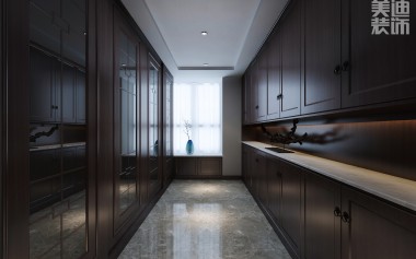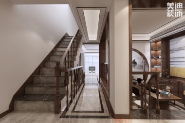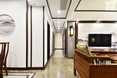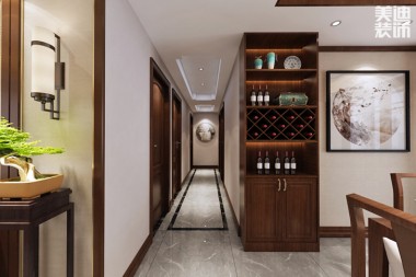 八方小區(qū)160平米新中式風實景圖--過道