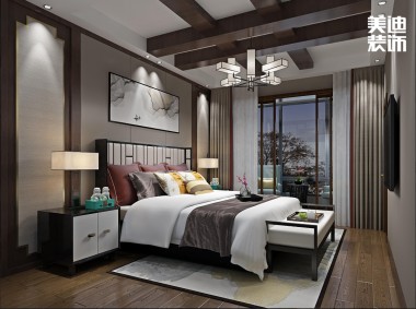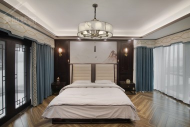 八方小區(qū)160平米新中式風實景圖--臥室