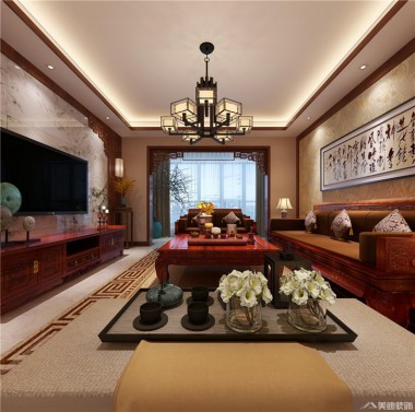 長(zhǎng)沙陽光麗城中式裝修案例-客廳