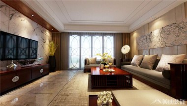 萬國城105平新中式風裝修案例圖—客廳